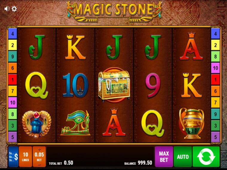 Spielautomaten mit antiken, ägyptischen Symbolen, Archäologie und Abenteuer gibt es mittlerweile in Hülle und Fülle. Konkurrenz-Automaten wie Book of Ra oder Eye of Horus sollten sich in Acht nehmen, denn Bally Wulff hat den Magic Stone Online Slot ins Rennen geschickt. Das hervorstechendste Merkmal sind wohl die fantastisch gezeichneten Gewinnsymbole. Aber auch während des Spiels werden Sie sich mit der Auszahlungsquote und den zwei Wildsymbolen bestens unterhalten. Erfahren Sie hier, wie Sie zunächst Magic Stone kostenlos spielen können, und was die Vorzüge eines von uns geprüften Top Casinos sind.