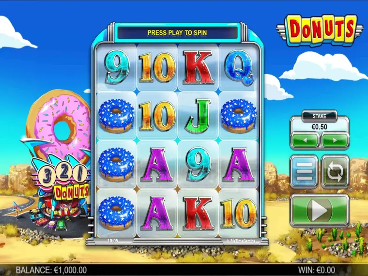 Mit dem Donuts Slot hat der australische Spielehersteller Big Time Gaming einen unglaublich unterhaltsamen Spielautomaten veröffentlicht, bei dem einfach alles stimmt. Es gibt über 2.000 Gewinnwege, Freispiele en masse und Multiplier soweit das Auge reicht. Alle Details über die Spielfunktionen, die Bonusrunde und das Freispiel erfahren Sie im folgenden Testbericht. Zudem finden Sie Donuts als Gratisspiel zum Ausprobieren und zahlreiche Top Online Casinos zum Spiel mit Echtgeld in unserer Bestenliste.