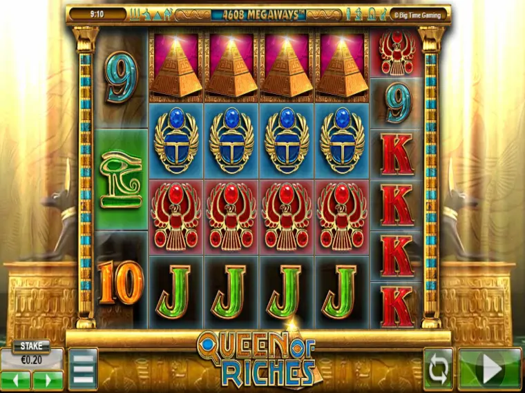 Neben Book of Gods hat Big Time Gaming einen weiteren Slot rund um das Thema Ägypten in petto. Der Queen of Riches Slot kommt mit einem tollen Soundtrack, schickem Design, Full Reel Wild, Multipliern und synchronisierten Walzen daher. In unserem folgenden Testbericht erfahren Sie alle Infos rund um Gameplay und Funktionen. Zudem können Sie den Spielautomaten gleich hier kostenlos spielen. Für etwas mehr Action finden Sie in unserer Empfehlungsliste passende Online Casinos, in denen Sie Queen of Riches mit Echtgeldeinsätzen spielen können.