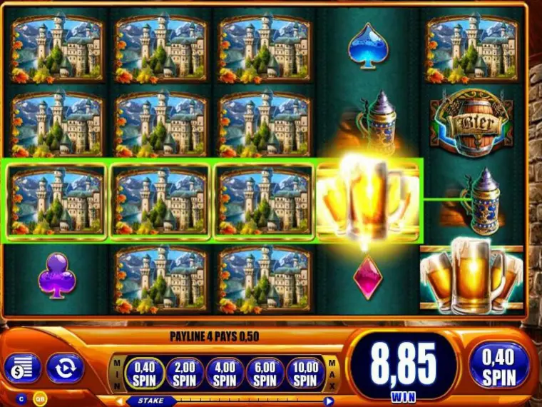 Der Bier Haus Slot ist wie ein Besuch im Wirtshaus, bei dem Sie ausgelassen Glücksspiel und Braukunst genießen und doch ganz nüchtern bleiben, es sei denn, die vielen Freispiele und Gewinne versetzen Sie in einen Glücksrausch. Die Daddel-Klänge des Automaten werden abwechselnd von einer traditionellen Blaskapelle und fetziger Techno-Musik untermalt.